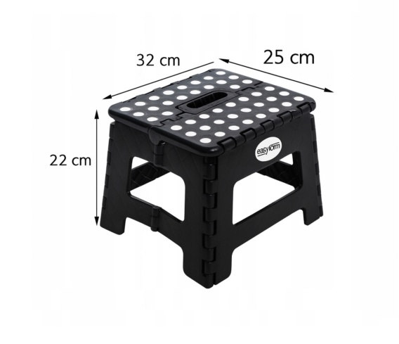 STOŁEK TABORET SKŁADANY PODNÓŻEK ANTYPOŚLIZGOWY CZARNY 22 cm 150 kg A904028 , EASYFORM