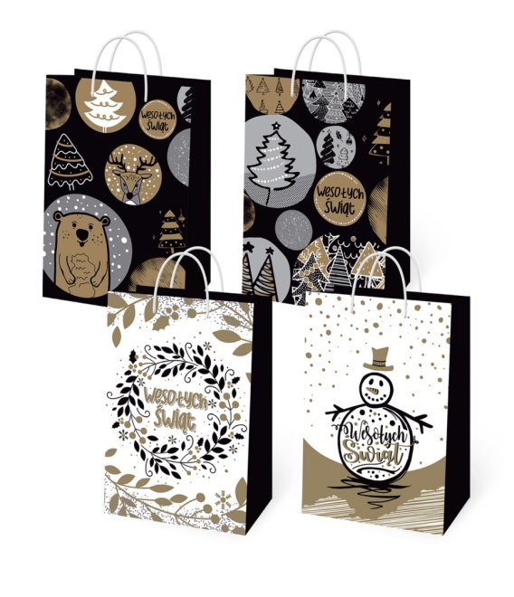 Torebka prezentowa świąteczna to elegancki i praktyczny sposób na zapakowanie upominków bożonarodzeniowych. Wykonana z wysokiej jakości papieru, z błyszczącym laminatem, pięknie odbija światło i podkreśla świąteczny charakter prezentu. Ozdobny sznurek pełni funkcję wygodnego uchwytu, a staranne wykończenie sprawia, że torebka prezentuje się wyjątkowo efektownie.