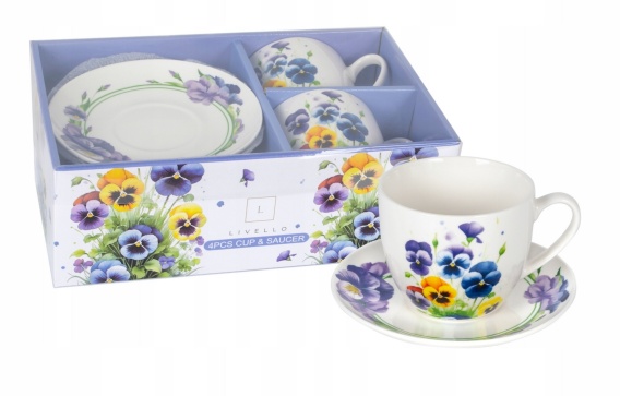 ZESTAW FILIŻANKI 250 ml ZE SPODKAMI 14 cm 2 SZTUKI KWIATY BRATKI CR2-98 , LIVELLO